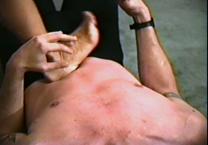 Lee’s beautifully developed legs are the star of this video. They seem to have a mind of their own. Phil spends this entire video on the floor and is reduced to a quivering, moaning, pathetic and helpless figure, felled by a dynamite set of feet.