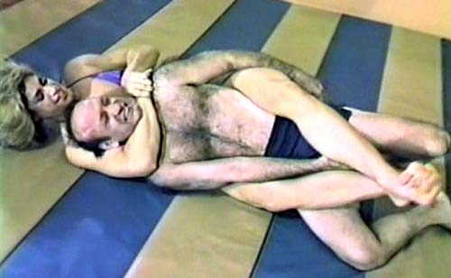 Larissa is a serous athlete and fine wrestler and proves it in her match with the small but fit 5’6” Jeff.